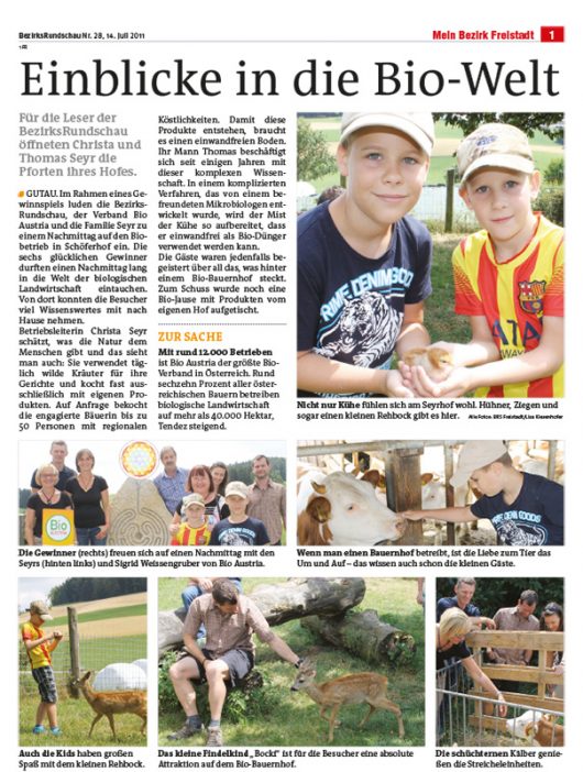 Einblicke in die Bio-Welt des Seyrhofs Für die Leser der BezirksRundschau haben wir die Pforten unseres Hofes geöffnet – Einblicke in die Erlebnisse können Sie im folgenden Artikel der aktuellen BezirksRundschau lesen. Jetzt lesen